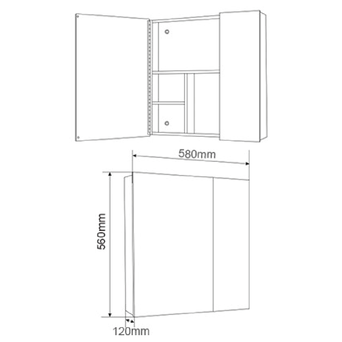 CABINET SIZE : H 560MM X W 580MM X D 120MM